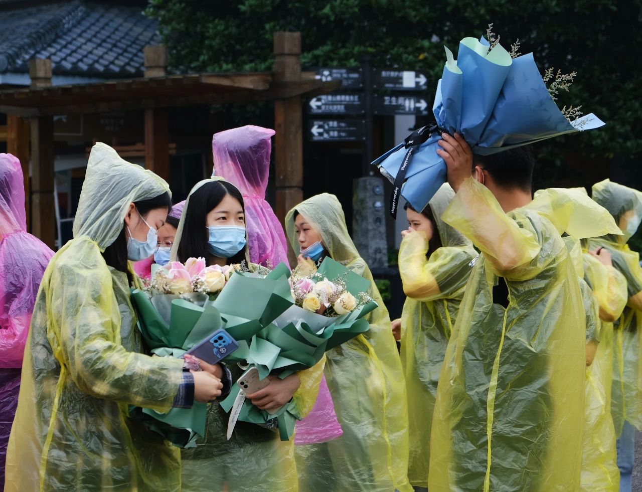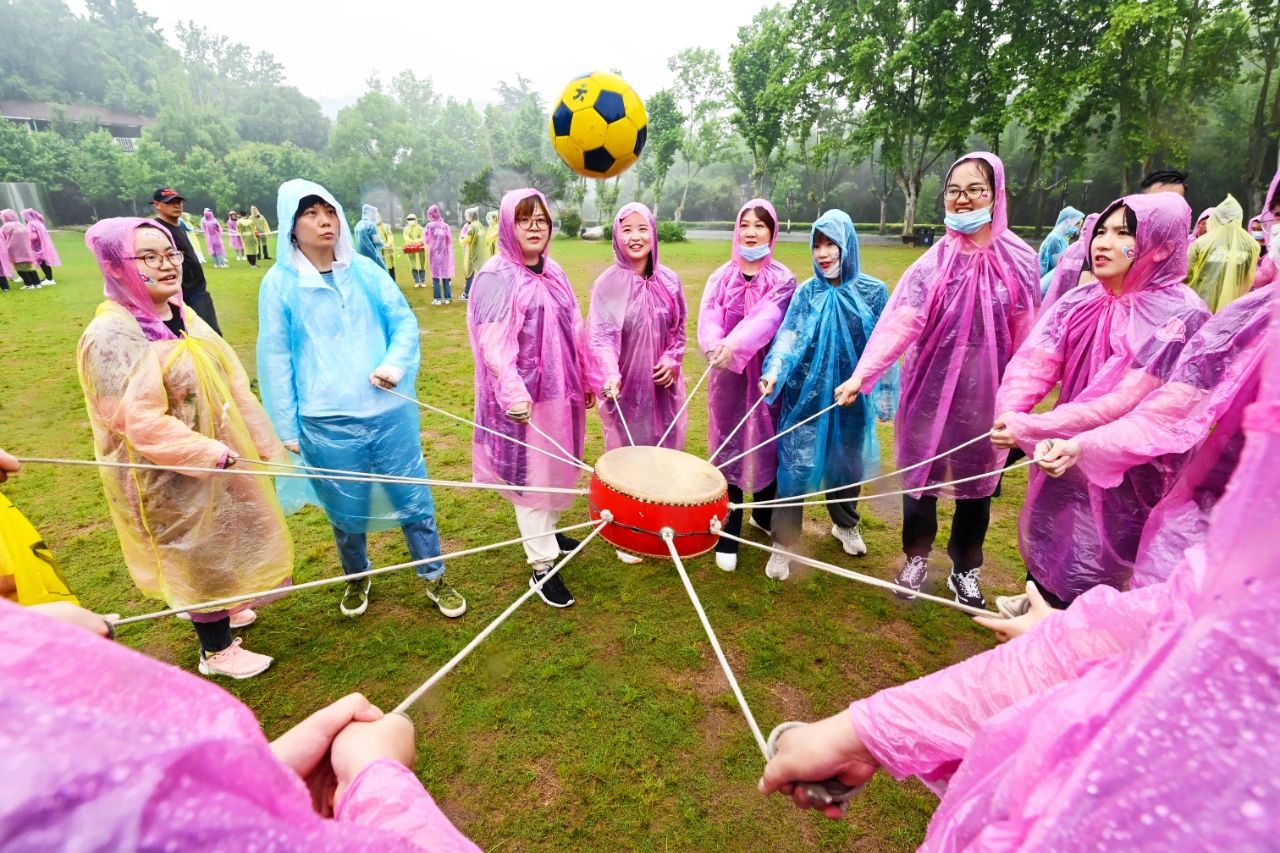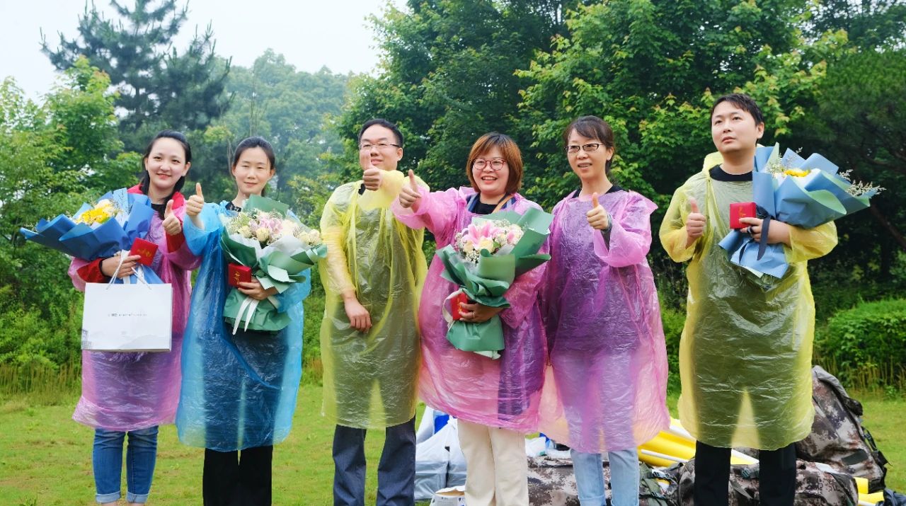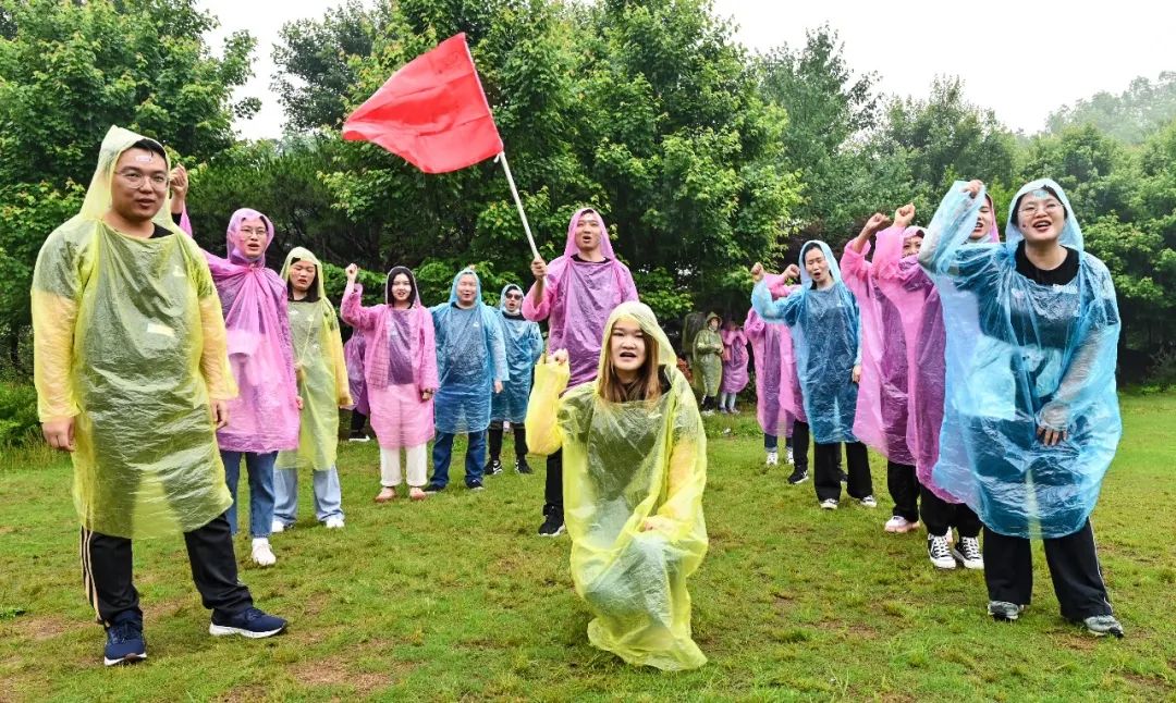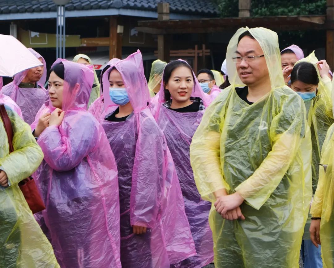 活动当天虽当天上午持续阴雨连绵,但是出游的同事们并未停下脚步,路途大巴上交谈甚欢载歌载舞,欣喜之情溢于言表,穿上花花绿绿的雨衣在雨雾中穿行,在东湖磨山水墨画一般的景色中划出一条彩色的长线,亦是一道别样的风景。