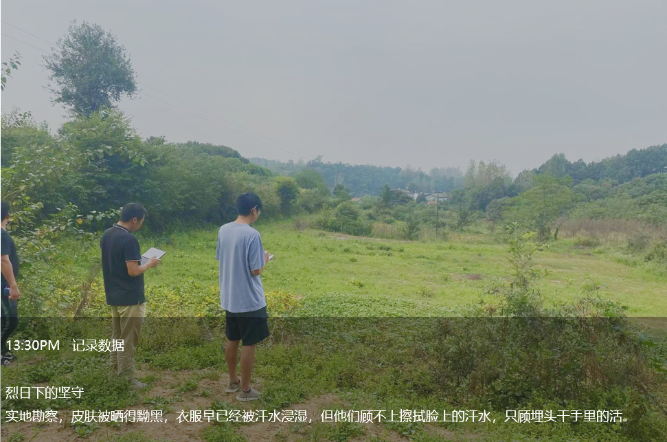 下午2点自然资源部虎哥无惧烈日“烤”验,在项目现场开展勘察工作,他以山峦为稿纸,以图纸为笔,以汗水为墨,书写最真实的工作日常。
