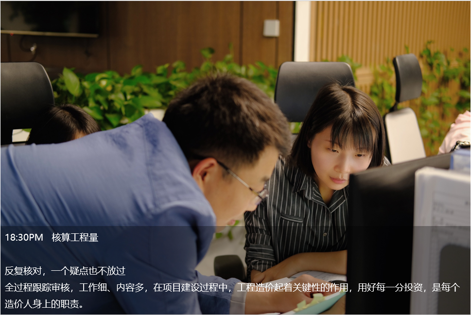 晚上7点,造价部同事还在计算工程量。内墙工程量是不是漏算了?混凝土类型是不是用错了?他们边检查边计算,用严谨的工作态度,扎实的专业技能,细致的服务理念,一次又一次赢得客户的信赖。