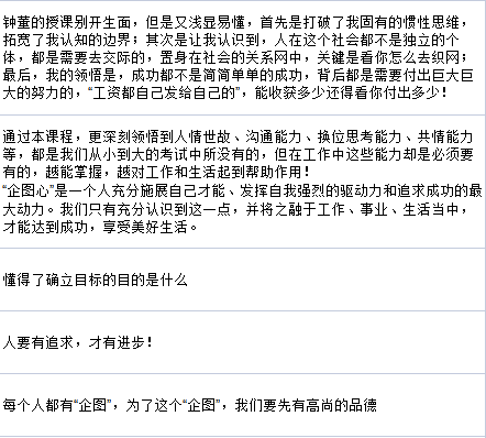 开堂的第一节课,他以《打开企图心》为主题,以提问为主的方式,激发线上线下的学员深入思考:我们为何而奋斗?我们因何而得到?既不是秀才(编者注:此语境下的含义为生活优渥者)也不是落榜者(编者注:此语境下的含义为因失败而发愤图强者)的我们又当以什么作为自身前进的动力?……