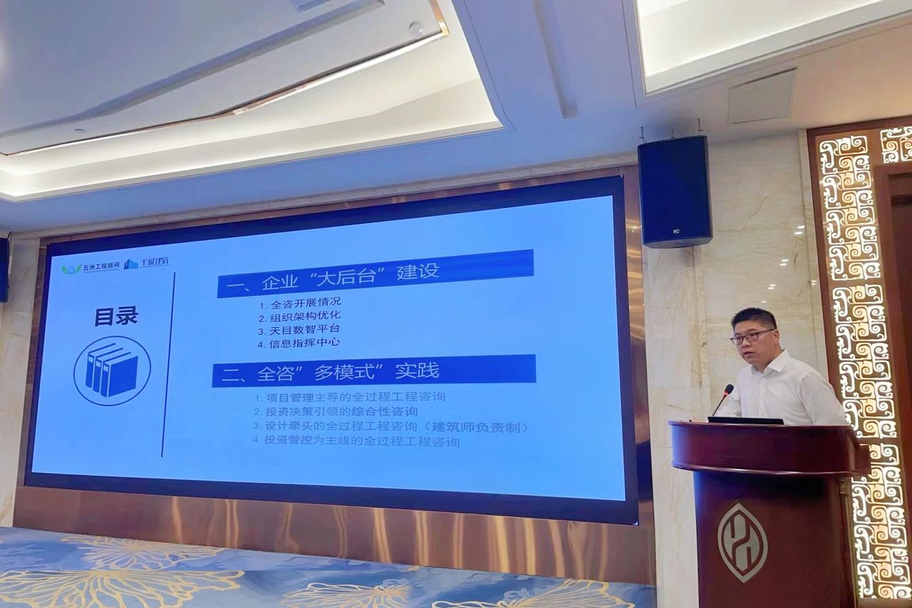 五洲工程顾问集团有限公司执行总经理柴恩海做了《半岛在线体育网探索实践》的主题报告,基于行业全咨标杆企业转型发展的实际,详细介绍了公司全咨“大后台”建设和全咨模式的实践两个方面的做法和经验,以及通过数字化平台建设,赋能全咨业务发展,并对当前全咨发展提出了相关建议。