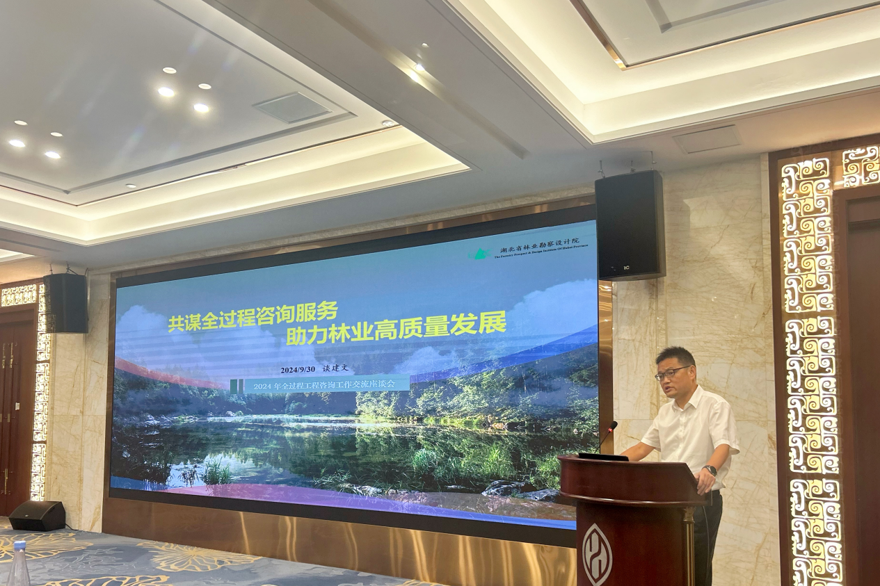湖北省林业勘察设计院副院长兼总工谈建文从勘察设计视角分享以设计为主线的半岛在线体育网服务模式,打造“对林业生态项目建设效果负责”的核心咨询管理能力,并做了《共谋全过程咨询服务,助力林业高质量发展》的主题分享。