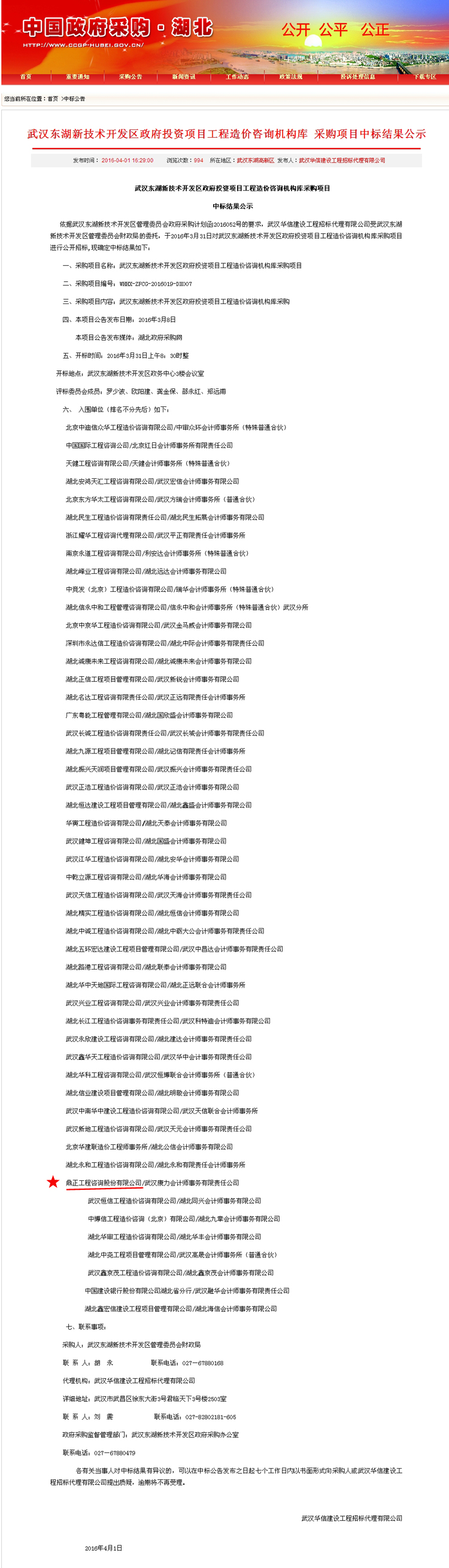 【经营成果】我司入围武汉东湖新技术开发区政府投资项目工程造价咨询机构库