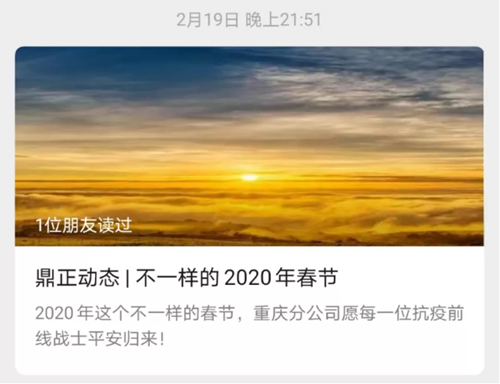 在疫情爆发之始,鼎正公司领导高度关注疫情动态,办公场所每日消毒,周密防控。在封城之时,呼吁全体同事安心在家做好防疫,不给社会增加负担。