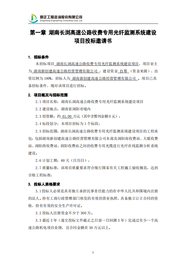 湖南长浏高速公路收费专用光纤监测系统建设项目投标邀请书