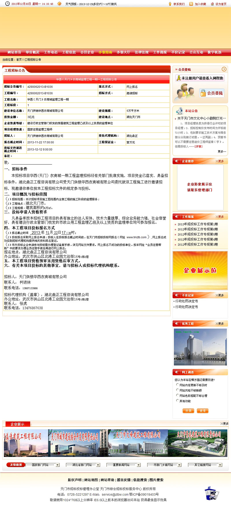 华西(天门)农商城项目市场一期(三标段)施工总承包工程