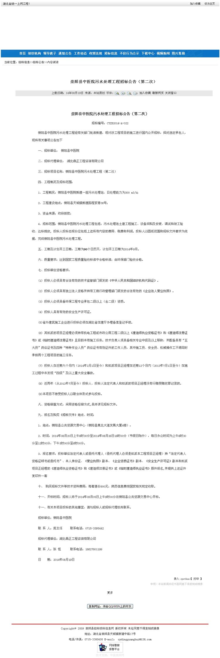 崇阳县中医院污水处理工程(第二次)