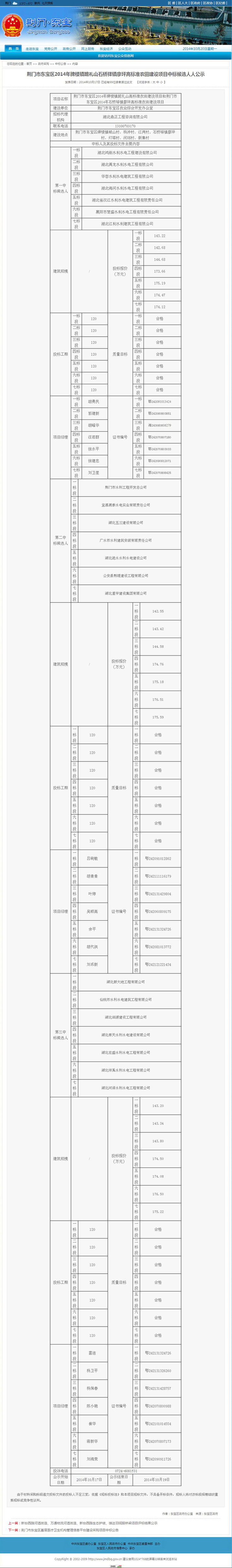 荆门市东宝区2014年牌楼镇跪礼山石桥驿镇廖坪高标准农田建设项目