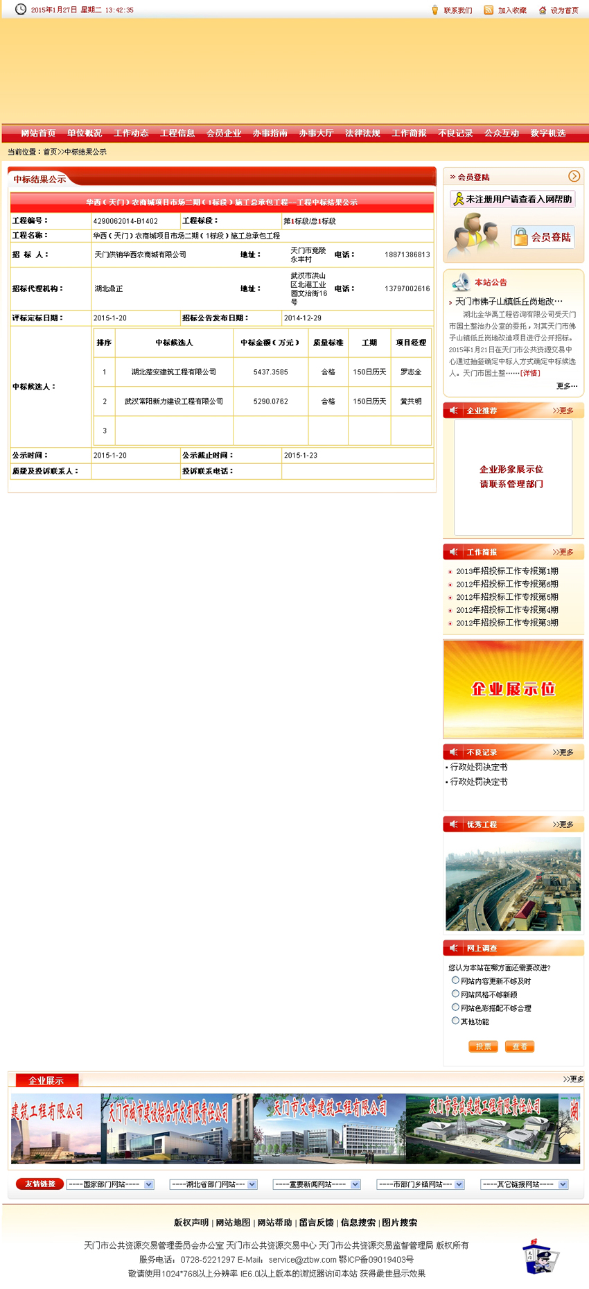 华西(天门)农商城项目市场二期(2标段)施工总承包工程