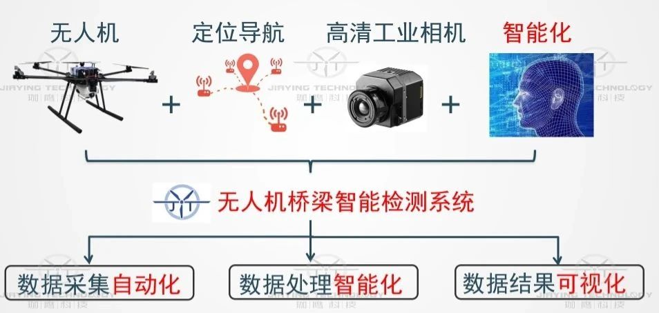珈鹰科技结合政策要求,自主研发了基于AI视觉监测的无人机桥梁智能检测系统,顺应智能检测设备精准、可靠、智能、集成的发展趋势,打造适应智能制造发展的智能检测体系。