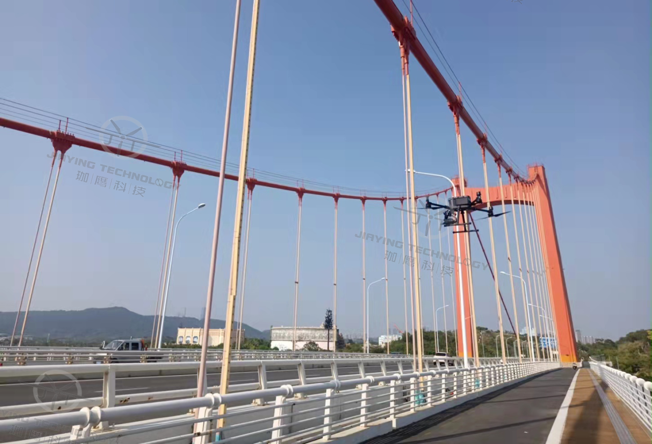 珈鹰根据这座斜拉索大桥所处的位置环境选择了适合的无人机型号和载荷,进行必要的调试与检查。采用多源数据融合的方法,攻克了卫星信号盲区这一难题,进而可对桥梁底部、桥墩、支座、侧面、桥塔、桥索等部位的外观进行全面高清图像采集。