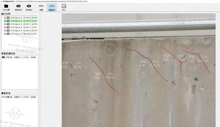对于斜拉索桥,其受力模式较为复杂,多个关键部位均有可能产生受力裂缝或其他病害。珈鹰利用自主研发的智能识别测量软件对已采集的高清图像进行智能、高效处理,精准定位受损位置,捕捉病害。
