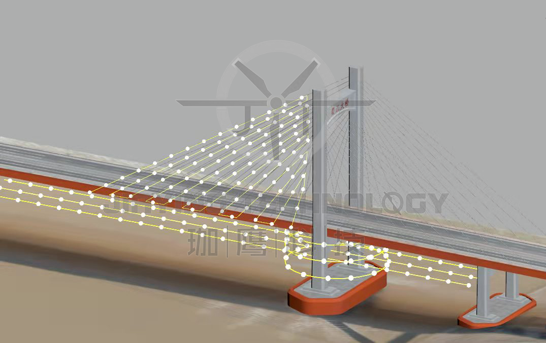鳌江特大桥跨越鳌江口,主跨320米,主桥桥塔采用H型门式桥塔,索塔高为102.4米,相当40层楼高,全桥共有96根斜拉索。就结构特性而言,斜拉桥整体刚度远小于连续刚构桥,因此通过智能检测的手段收集病害信息至关重要。
