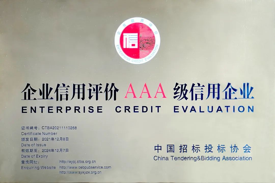 企业信用等级是企业发展过程中信用形象的重要标志,也是企业参与市场竞争的一项重要的无形“资产证”。在国家持续深入推进“放管服”改革,进一步优化营商环境,取消资质审批、加强信用管理的新形势下,鼎正在众多参评企业机构中脱颖而出,获评AAA信用等级荣誉。