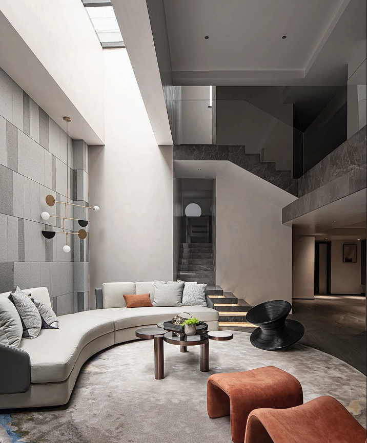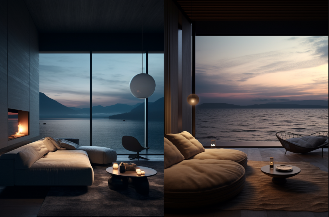 灯光对室内色彩的影响,也是设计师需要考虑的重要因素。灯光的亮度、色温、显色度都直接影响着室内色彩的最终视觉表现。暖光配暖色显得温馨;暖光配冷色或者冷光配暖色会形成一定的色彩对比产生视觉冲击感;冷光配冷色会显得幽静深远,具有未来科技感。