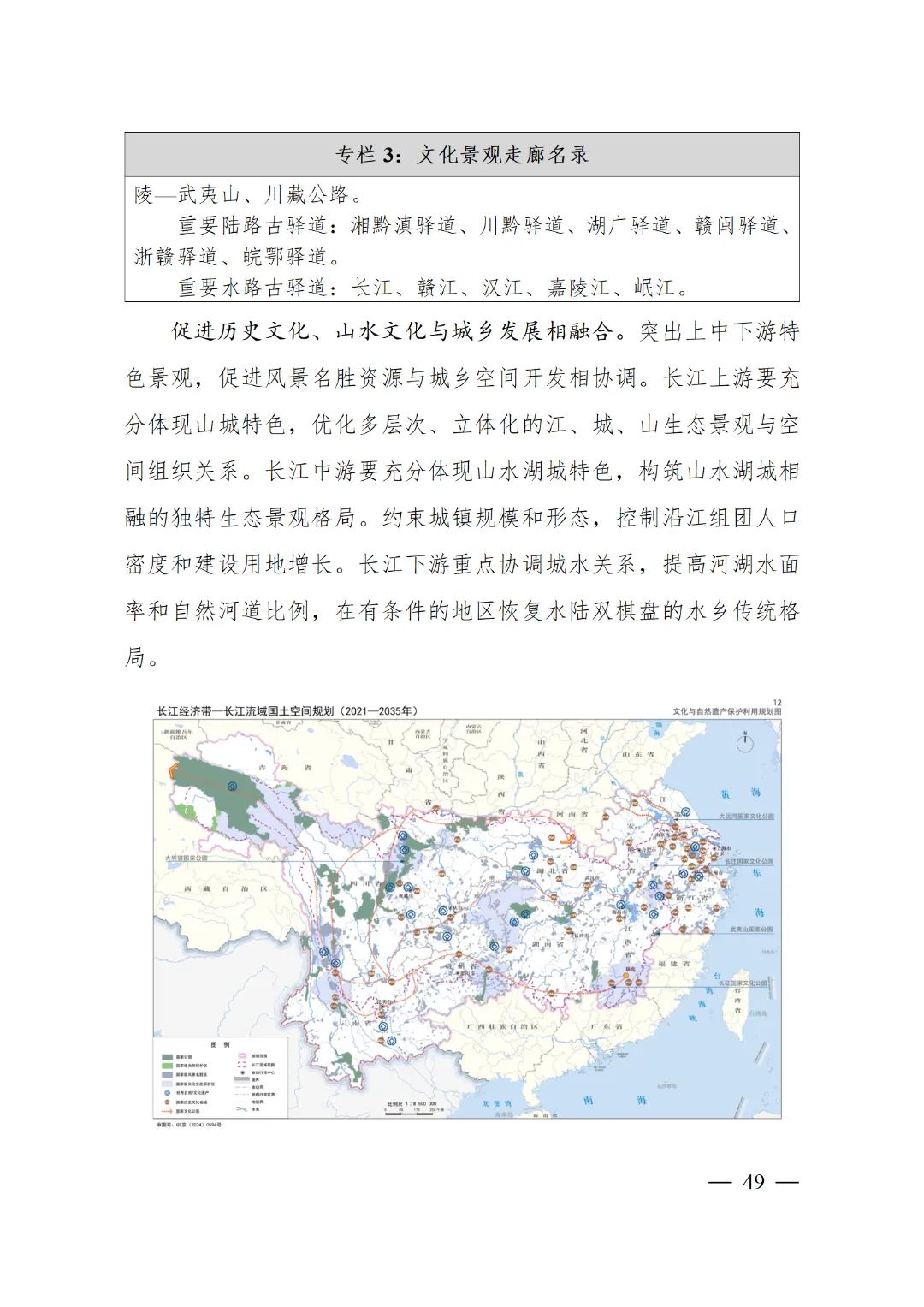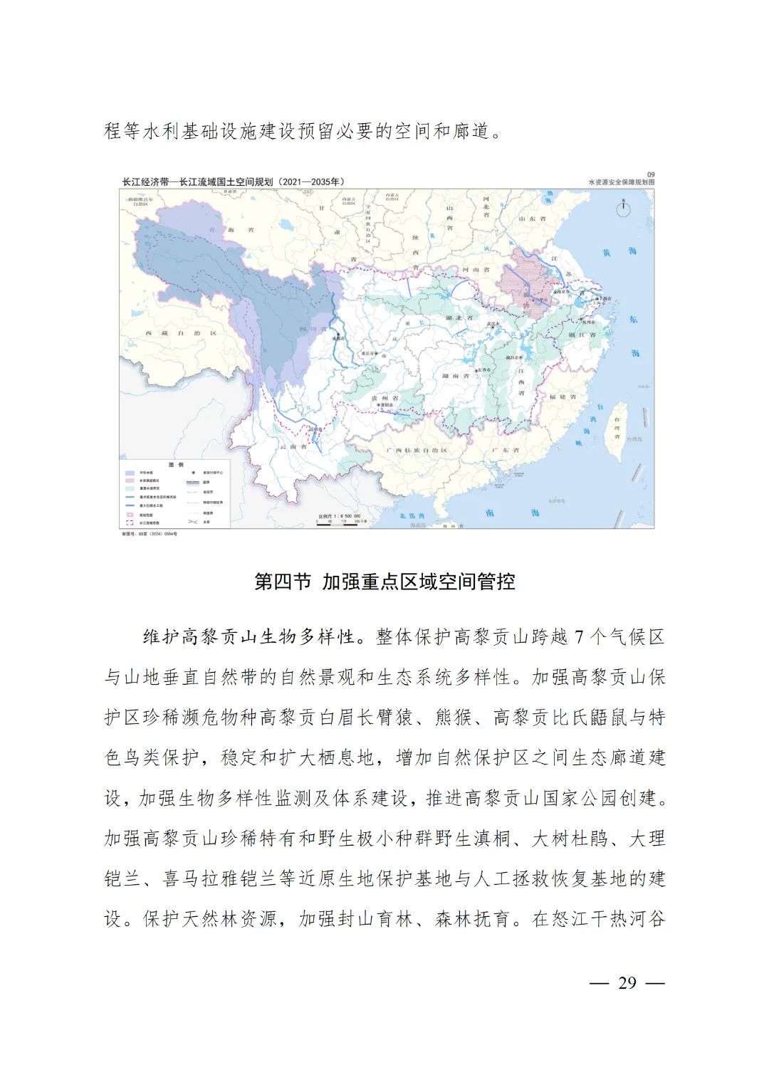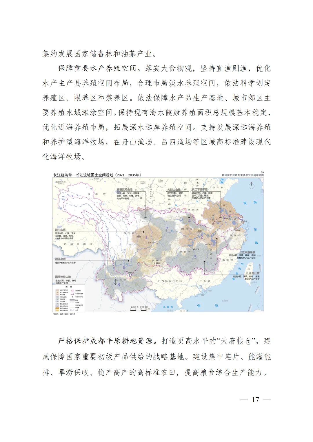 2024年2月9日,《长江经济带—长江流域国土空间规划(2021—2035年)》经国务院批复同意。9月10日,自然资源部正式印发《长江经济带—长江流域国土空间规划(2021—2035年)》。规划范围包括长江经济带11个省(市)全域,以及《长江保护法》规定的长江流域其他8省(区、市)的相关县级行政区域,共计1173个县级行政区域。规划范围包括陆域国土和内水、领海。其中,陆域面积240万平方公里。(后附规划范围详细表格)规划期限为2021年至2035年。
