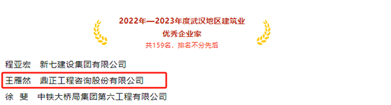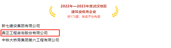 11月21日,武汉建筑业协会正式公布“2023年度武汉市最具成长性民营建筑企业”、“2022-2023年度武汉地区建筑业优秀企业、优秀企业家、优秀总工程师、优秀项目经理”两项评选结果,鼎正连续上榜,斩获多项行业荣誉!