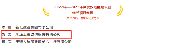 ▲2022-2023年度武汉地区建筑业优秀项目经理