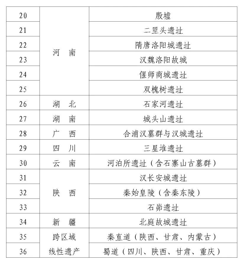 附件:重要大遗址清单(第一期)
