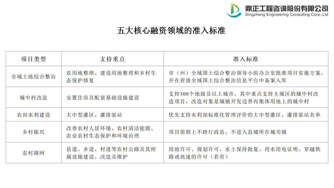 1.五大核心融资领域的准入标准