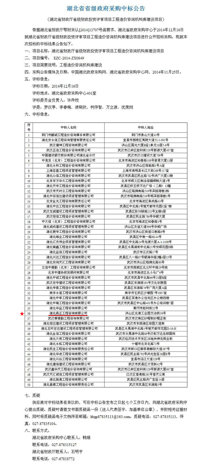 【经营成果】我司入选湖北省财政厅省级财政投资评审项目工程造价咨询机构库