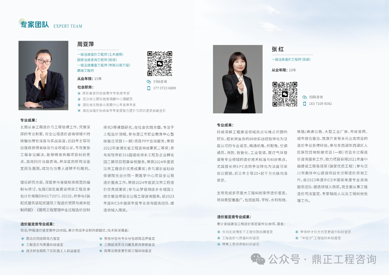 故,组建了一支精通工程造价、熟悉法律法规,且融合工程设计、招标投标、合同管理、施工组织设计的复合型专业团队,其中专家团队如下: