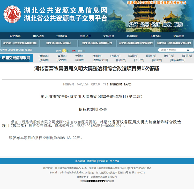 湖北省畜牧兽医局文明大院整治和综合改造项目第1次答疑