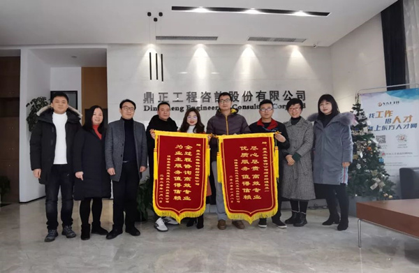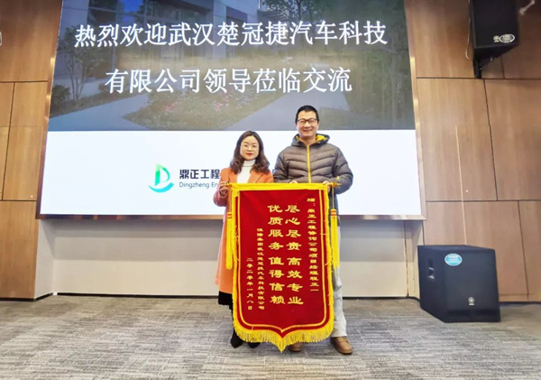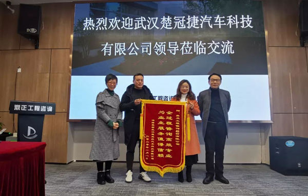 2020年1月14日,武汉楚冠捷汽车科技有限公司龚经理、朱主任莅临鼎正咨询公司,特向为其二期厂房建设项目提供半岛在线体育网服务的鼎正咨询团队及项目负责人程正一赠送锦旗并表达感谢。