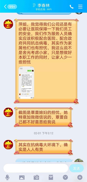 正当我犹豫不决的时候,彭总打来电话,说她就我们公司对员工健康问题的担忧与业主进行了详细的沟通,业主保证会做好我们公司员工的防护工作,并尽量启用线上沟通来协调工作。
