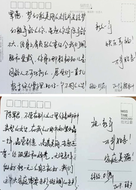 ▲彭总写给覃蕾、陈军君的祝福卡片