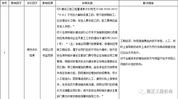 综上所述,疫情对PPP项目的影响为三个方面,一是政府补贴支付延期;二是绩效评价评分降低;三是项目公司收益受损
