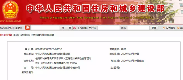 2020年3月3日,住建部50号令“住房和城乡建设部关于修改《工程造价咨询企业管理办法》《注册造价工程师管理办法》的决定”一夜间在工程咨询行业引发了激烈的讨论。