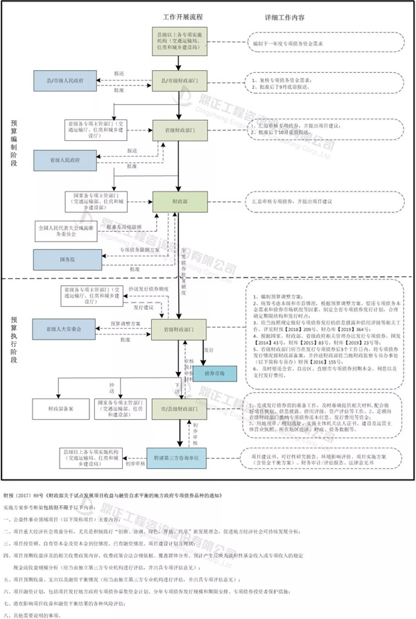 本次以县市级政府发行债券的审批流程(如下图)为例,分为预算编制阶段和预算执行阶段两个阶段。