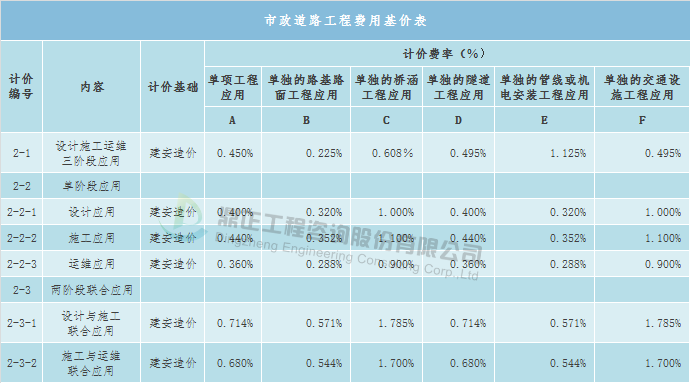工程勘察取费可参考《国家计委、建设部关于发布<工程勘察设计收费管理规定>的通知》(计价格〔2002〕10号),收费标准分为通用工程勘察收费标准和专业工程勘察收费标准。通用工程勘察收费标准适用于工程测量、岩土工程勘察、岩土工程设计与检测监测、水文地质勘察、工程水文气象勘察、工程物探、室内试验等工程勘察的收费。专业工程勘察收费标准分别适用于煤炭、水利水电、电力、长输管道、铁路、公路、通信、海洋工程等工程勘察的收费。同时工程勘察取费可参考《市政工程投资估算编制办法》(中华人民共和国建设部建标〔2007〕164号),按工程费用的0.8%~1.1%计列。工程设计取费可参考《国家计委、建设部关于发布<工程勘察设计收费管理规定>的通知》(计价格〔2002〕10号),采取按照建设项目单项工程概算投资额分档定额计费方法计算收费。
